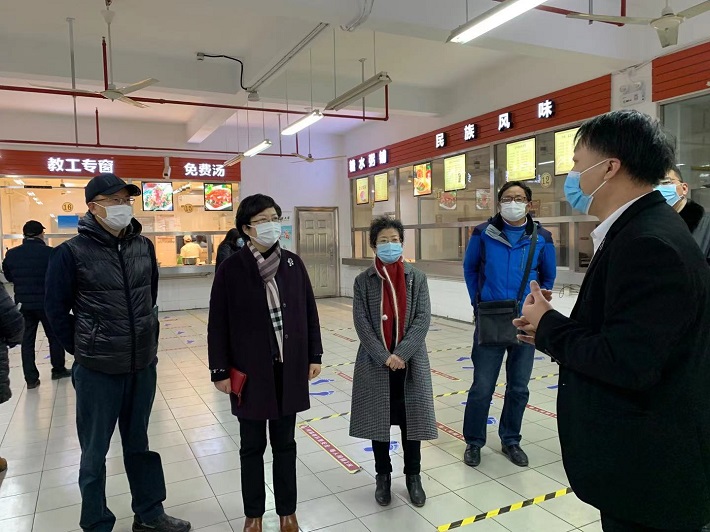 现场检查中,校领导详细听取了寒假期间进出校园人员管理方案,实地查看了图书馆、食堂窗口开放情况,仔细询问了人员管理台账、进出口管理及菜品菜价等。在留校学生集中住宿的宿舍楼,校领导认真查看了学生住宿台账、出入登记情况、防疫物资储备、公共区域保洁、学生体温检测等情况。