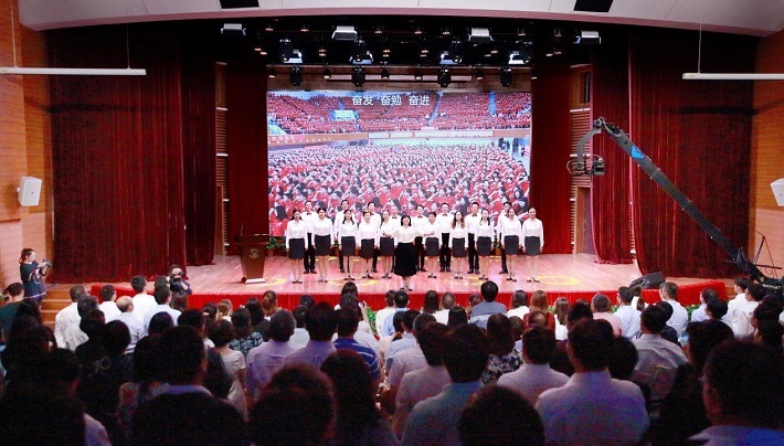 9月28日,上海市教卫工作党委系统“伟大工程”系列示范党课之“厚德精技 香远益清”主题党课在我校开讲,通过导课、结课、主题演讲、视频讲述、情景表演等形式,讲述了上应大党组织坚守初心、勇担使命的家国情怀和砥砺担当。