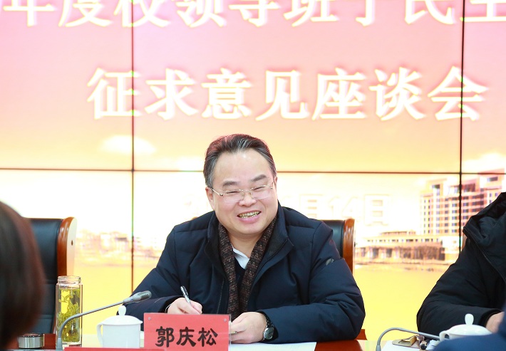 为确保校领导班子民主生活会开出高质量、取得好效果,1月14日,校党委书记郭庆松主持召开校领导班子民主生活会征求意见座谈会。部分职能部处及学院的中层干部、民主党派、师生代表等参加座谈会。