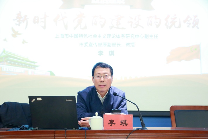 12月29日下午,校党委理论学习中心组举行2020年第九次集体学习会,专题学习新时代党的政治建设。上海市中国特色社会主义理论体系研究中心副主任、上海市委宣传部原副部长李琪应邀作辅导报告。校党委书记郭庆松主持学习会。党委副书记宋敏娟,党委副书记、纪委书记何星海,党委副书记、副校长王瑛,副校长张锁怀,副校长毛祥东,校党委常委、宣传部部长杨明出席。