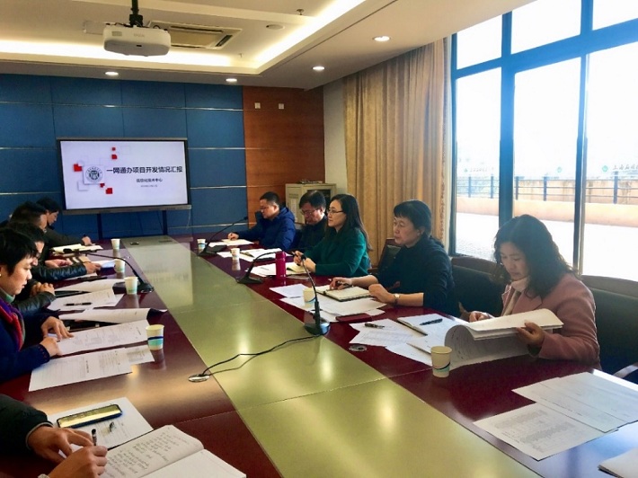 会上,信息化技术中心主任张小全围绕“一网通办(一期)”项目整体推进情况和存在的问题作了汇报。与会人员对“一网通办”平台和流程进行了讨论,同时也提出了“一网通办”部门管理员体系建设、深入推进跨部门业务开发等建议。