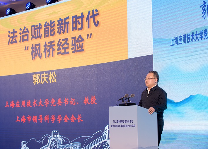 12月21日,由中国领导科学研究会、中共诸暨市委、诸暨市人民政府联合主办的“第二届中国基层领导力论坛暨中国领导科学研究会(2020)年会”在浙江省诸暨市召开。本次论坛旨在深入学习贯彻党的十九届四中、五中全会精神,研究探讨和弘扬新时代“枫桥经验”,推进党领导下的基层社会治理,提升党的基层领导力。我校党委书记、上海市领导科学学会会长郭庆松在会上作主题为《法治赋能新时代“枫桥经验”》的主旨演讲。