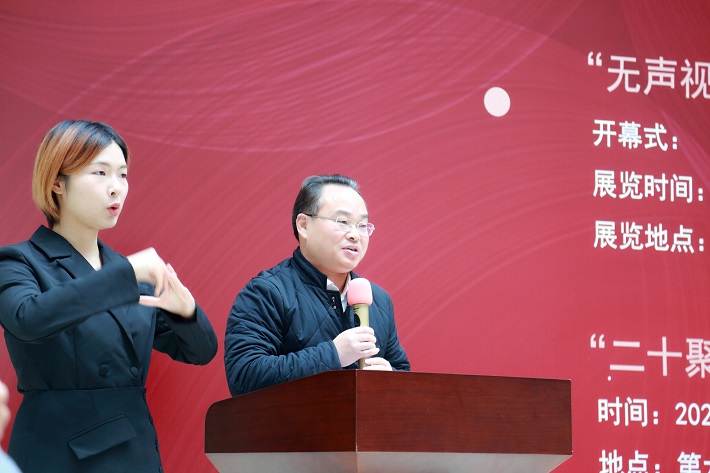 艺术学院院长李哲虎在开幕式致辞中表示,在“国际残疾人日”这个隆重的日子里,学校特别邀请了优秀毕业生周佳艺在我校举办个人艺术展览,以此向社会汇报我校聋人教育的成果。在周佳艺的作品中,看到她在这寂静的世界里找到美丽、精彩、欢快。周佳艺的成长,为我们的特殊教育传递了一股正能量,我们有信心将特殊教育工作越办越好。