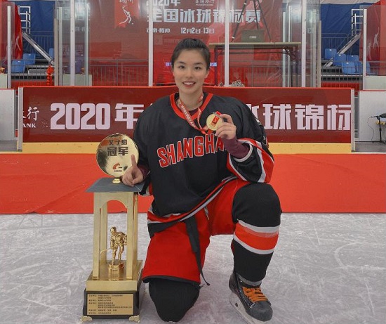 近日,在刚刚落幕的全国冰球锦标赛上,我校经管学院2019级市场营销(中加合作)专业学生黄滟作为上海队主力队员,五战全胜勇夺冠军,这也是上海队首获此项殊荣。