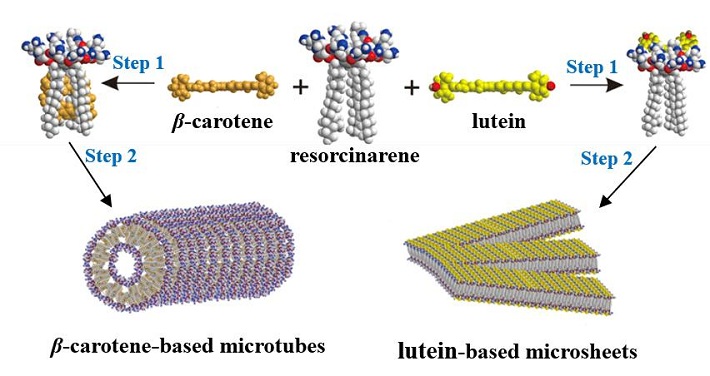 间苯二酚杯芳烃和β-胡萝卜素/叶黄素的组装机理图