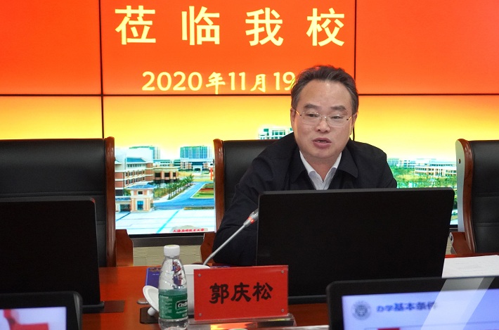 郭庆松详细介绍了我校发展历程和学校近年来在学科建设、人才培养等方面的成绩,以及建设具有国际影响力的高水平应用创新型大学的思路与举措。
