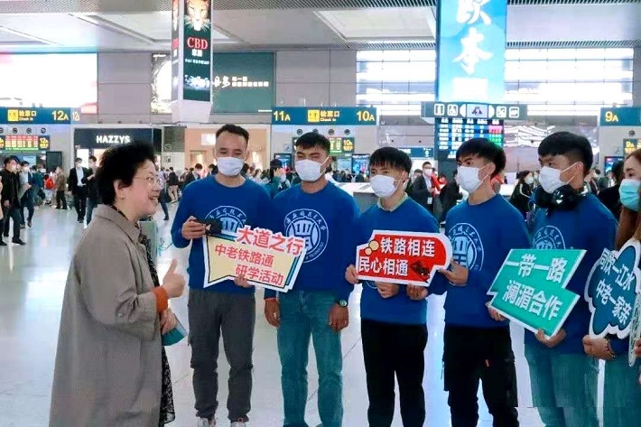 11月19日,在我校2018级老挝留学生回老挝赴中老铁路现场实习之际,轨交学院中老学生正式开启“一带一路澜湄合作”大道之行“中老铁路通”研学活动。校党委副书记宋敏娟、上海市人民对外友好协会黄仰冰赴虹桥火车站送别学生。