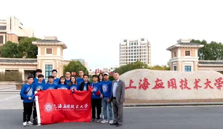 在离开学校前,留学生们与轨交学院师生在校门口合影留念。