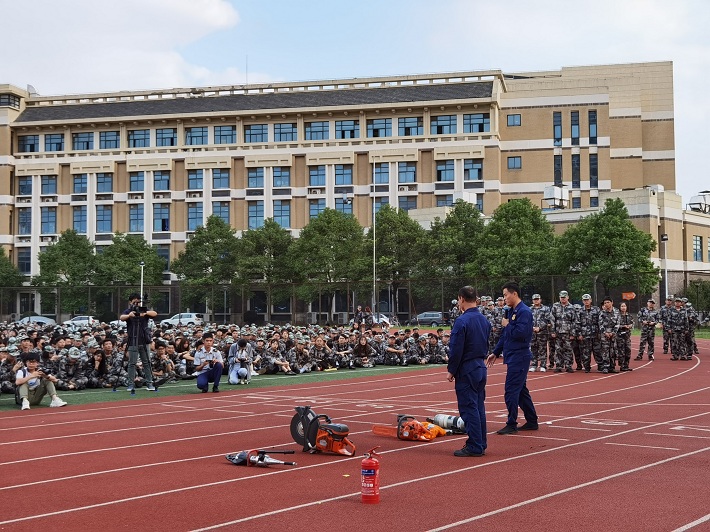 24日,学校在奉贤校区举行2020级新生消防安全知识讲座及灭火疏散演习。奉贤区消防支队相关负责人应邀为全体新生主讲消防安全知识培训课,包含消防安全常识、火灾警示视频、高校火灾隐患启示录和火灾逃生教育片。讲座结束后,现场开展了疏散逃生、遇险营救、伤员救助、灭火演练等演习科目,训练学生的疏散逃生技能、自我营救方式及灭火技巧,提高了广大学生的消防安全意识和自救能力。
