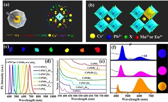 第五代通讯技术(5G)的发展亟需大力推进与之匹配的高效、高品质、多功能显示技术。全无机卤化物钙钛矿量子点因具有高荧光量子效率、可调的发射光谱、高缺陷容忍度及良好的单色性等优点成为新一代最具潜力的显示材料之一。通过异质结的构筑,可对钙钛矿纳米晶的辐射跃迁物理性质实现进一步调控,从而对材料的显色特性时间进一步优化和调控;然而,由于应力以及晶格失配的存在,目前仍缺少高质量钙钛矿纳米晶异质结的有效构筑方案。