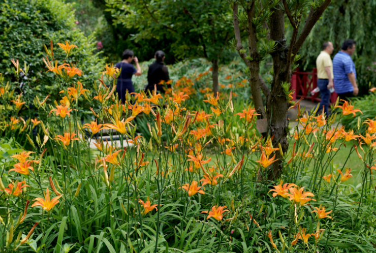6月13日,上海应用技术大学校园内,萱草花竞相开放。