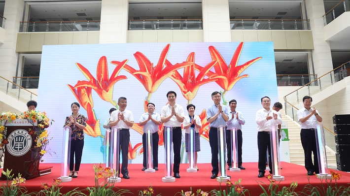 6月13日,由上海应用技术大学和上海市奉贤区人民政府联合主办的2020中国上海萱草文化节在我校奉贤校区举行开幕式。上海市教卫工作党委副书记、上海市教委副主任李昕,中共上海市奉贤区委副书记骆大进,上海市农业科学院院长、党委书记蔡友铭,湖南省人民政府驻上海办事处党组书记、主任魏旋君,山西省人民政府驻上海办事处党组书记、主任、山西省长三角招商局局长韩侠,上海市农业农村委员会副主任叶军平,上海市绿化和市容管理局副局长顾晓君,中国风景园林学会副理事长、上海市风景园林学会理事长周如雯,光明日报社上海记者站站长曹继军等出席开幕式。校党委书记郭庆松,校党委副书记、校长柯勤飞,校党委副书记宋敏娟,校党委副书记、纪委书记何星海,校党委副书记、副校长王瑛,副校长张锁怀,副校长毛祥东出席。李昕、郭庆松在开幕式上讲话,柯勤飞代表学校致辞。宋敏娟主持开幕式。