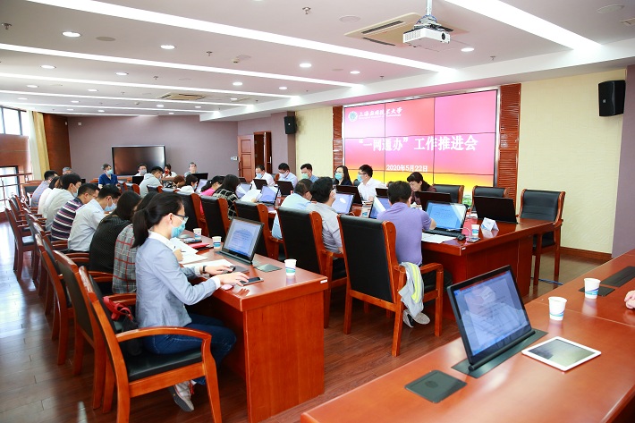 5月22日,学校召开“一网通办”工作推进会, 校党委副书记、副校长王瑛出席会议并讲话。各行政职能部门负责人参会,校办主任邱翔主持会议。
