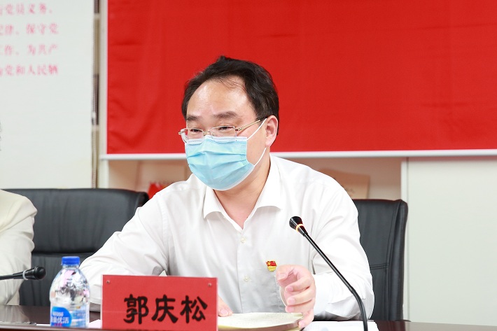 在纪念馆序厅,面对鲜红的党旗,郭庆松带领大家重温入党誓词,铮铮誓言,铿锵有力,更加坚定地牢记入党时的庄严承诺和初心使命。