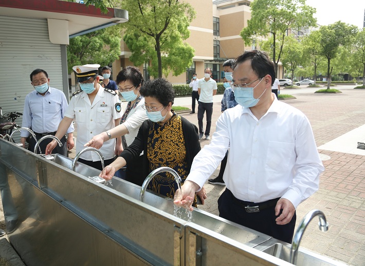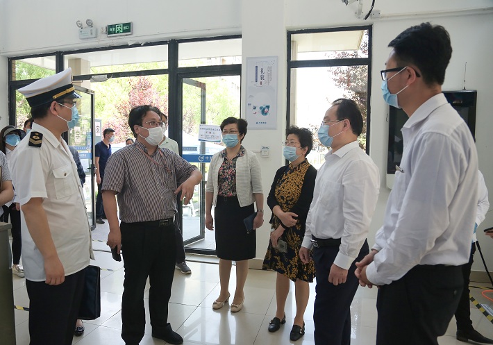 5月19日,市教卫工作党委副巡视员杨伟人,市卫健委疫情防控督导检查组处长、监督科学校组处长林建海、李萍,市教委国际交流副处长栾雪莲等一行到我校奉贤校区检查指导疫情防控相关工作。校党委书记郭庆松,校党委副书记、校长柯勤飞,校党委副书记宋敏娟,副校长毛祥东全程陪同检查。