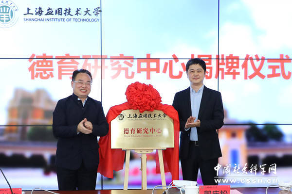 上海应用技术大学党委书记郭庆松、上海市教委德育处副处长杨长亮共同为上海应用技术大学德育研究中心揭牌