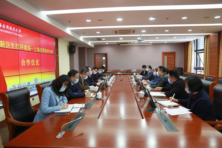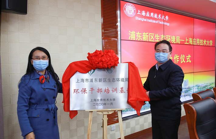 会上,郭庆松、刘军为“上海市浦东新区生态环境局——上海应用技术大学环保干部培训基地”揭牌,浦东新区生态环境局环保处、督察处负责人和校科技处、化工学院负责人分别为“上海市浦东新区生态环境局——上海应用技术大学教学实践基地”揭牌。