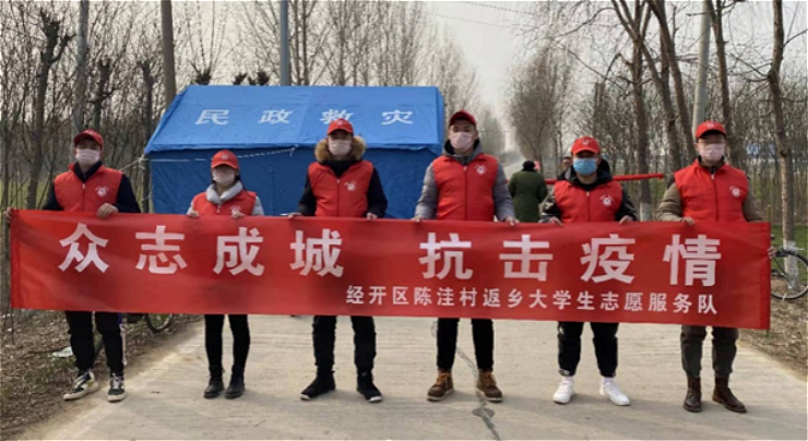 上海应用技术大学理学院研究生陈跃同学是一位共产党员,在家乡山东省肥城市,他组织15名返乡大学生、研究生组成一支抗击疫情志愿服务队,开展志愿服务,与肥城市家乡的社区干部、医护人员、民警一同战斗在抗击疫情第一线。