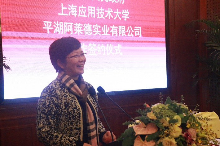 座谈会上,各方先后签署了《平湖市人民政府与上海应用技术大学全面合作框架协议》和《阿莱德实业股份与上海应用技术大学战略合作协议》;举行了“上海应用技术大学与阿莱德实业股份有限公司产学研基地”和“上海应用技术大学与阿莱德实业股份有限公司联合实验室”揭牌仪式。
