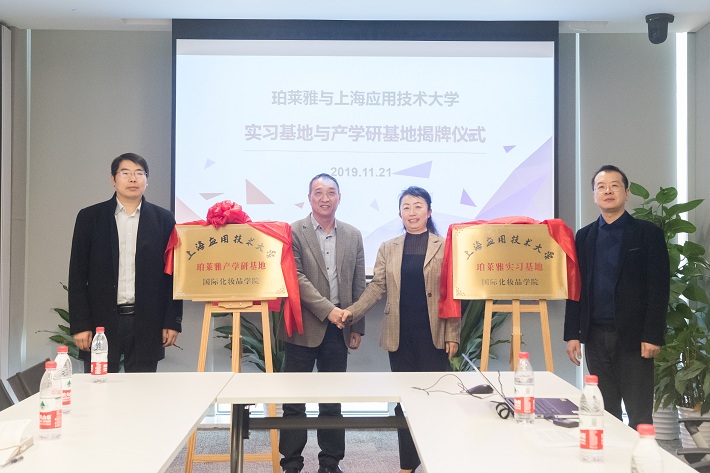 在珀莱雅化妆品股份有限公司,张婉萍表示,国际化妆品学院把艺术设计、市场营销、化妆品技术与工程有机结合,未来将会培养更多化妆品领域专业人才,希望校企深入对接,加快科技成果转化,实现校企共赢发展。珀莱雅研发创新中心高级总监蒋丽刚表示,此次揭牌是校企合作的重要里程碑,可以有效拓宽大学生的实习与就业渠道,同时上海应用技术大学也可以更贴合企业实际需求,为珀莱雅输送高质量人才。随后双方共同为实习基地与产学研基地揭牌。