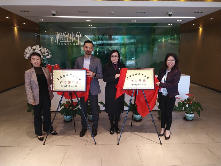 在上海相宜本草化妆品股份有限公司,王瑛介绍了我校近年来建设高水平应用型大学所取得的成就,及我校国际化妆品学院的发展目标和建设现状。王瑛表示,相宜本草与上海应用技术大学化妆品学科有良好的合作基础,由相宜本草冠名并支持的全国高校首届“相宜杯”大学生化妆品产品开发竞赛于去年成功举办,此次揭牌的实习基地和产学研基地,将能够拓宽双方的合作领域。相宜本草副总裁吕智表示,相宜本草始终重视与高校开展研发合作,借助高校智力优势提升产品技术含量,此次揭牌仪式将深化双方合作内容,助推各自战略目标的实现。随后,双方共同为产学研基地、实习基地揭牌。