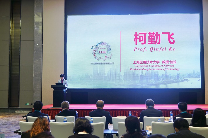 11月22日至23日,由上海应用技术大学、上海香料研究所、上海化工研究院有限公司共同主办,中国香料香精化妆品工业协会等单位协办的“2019 中国国际香料香精化妆品科学技术论坛”在上海举办。校长柯勤飞应邀出席并致辞,中国香料香精化妆品工业协会理事长陈少军、上海化工研究院有限公司院长李良君出席会议。会议由我校香料学院院长、上海香料研究所所长肖作兵教授主持。英国皇家工程院院士、英国伯明翰大学Zhibing Zhang教授,美国罗格斯州立大学Chi-Tang Ho教授和Qingrong Huang教授、美国伊利诺伊大学香槟分校Keith Cadwallader教授、美国克莱姆森大学Feng Chen教授、美国俄勒冈州立大学Michael C Qian 教授、美国国际香料公司技术总监 Yabin Lei 博士、芬美意香料(中国)有限公司亚太区研发中心副总裁陈东方博士等国内外高校、科研院所、香料香精化妆品行业专家学者、企业家等共200余人出席论坛。