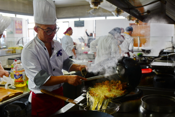 “餐饮岗位技能大赛”包括白案(点心制作)、红案(热食制作)以及卡机速算,旨在提升食堂员工的服务意识和服务水平,为师生提供更好地服务和更加可口美味的菜品。