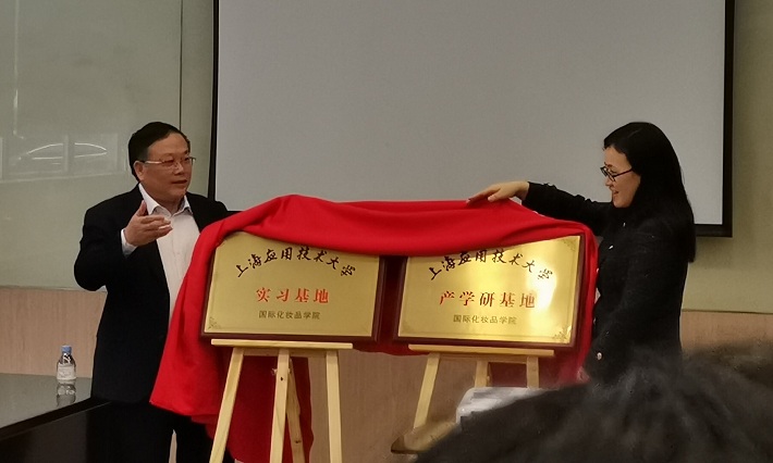 11月7日,校党委副书记、副校长王瑛率队赴上海百雀羚日用化学有限公司和华熙怡兰化妆品(上海)有限公司,出席我校与两家企业的产学研基地、实习基地揭牌仪式。