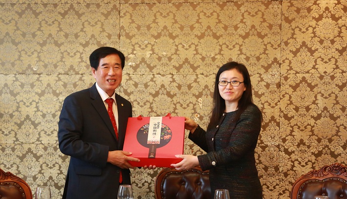 11月4日,校党委副书记、副校长王瑛热情接待了韩国庆山市市长崔永祚带领的庆山市代表团,代表团成员包括庆山市计划财政局长李汉宰、庆山市战略事业推进团长金舆洙、大邱韩医大学总长卞暢壎、大邱韩医大学产学合作团团长朴秀鎭等。