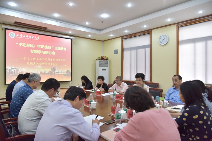 10月7日下午,校领导班子“不忘初心、牢记使命”主题教育集中学习研讨会召开,聚焦“习近平总书记关于弘扬新时代爱国主义精神的重要论述”专题,与会同志集体学习了习近平总书记关于爱国主义精神的重要论述以及习总书记在庆祝新中国成立70周年大会上的重要讲话精神。校党委书记刘宇陆主持学习会并作总结讲话,校党委副书记、校长柯勤飞,校党委副书记宋敏娟,校党委副书记、纪委书记何星海,校党委副书记、副校长王瑛,副校长张锁怀,党委常委、宣传部长杨明,党委常委、组织部统战部部长王占勇出席会议。宋敏娟、张锁怀领学,柯勤飞、何星海作交流发言。