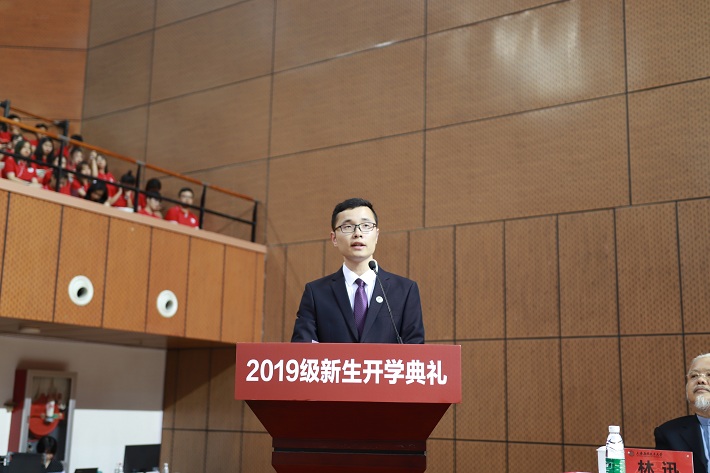 教师代表、校学术委员会主任、材料学院院长徐家跃教授,老生代表、2019年校长奖提名奖获得者、机械工程学院叶源飞同学,新生代表、计算机学院田嘉源同学,研究生新生代表、化工学院胡嘉豪同学先后在典礼上发言。