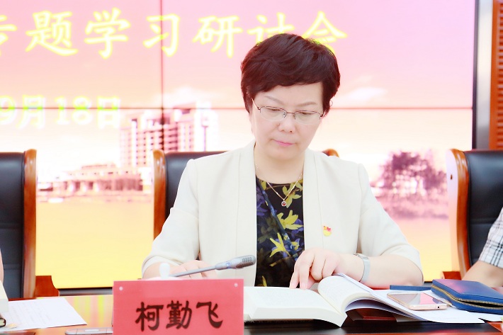 9月18日下午,根据“不忘初心、牢记使命”主题教育总体安排,校领导班子以“理想信念”为主题开展集中交流学习研讨。市委主题教育第十二巡导组组长张超美及郑锦、曾瑜华、张逢春出席指导。校党委书记刘宇陆,校党委副书记、校长柯勤飞,校党委副书记宋敏娟,校党委副书记、纪委书记何星海,校党委副书记、副校长王瑛,副校长张锁怀,党委常委、宣传部长杨明,党委常委、组织部统战部部长王占勇出席会议。刘宇陆主持学习会并讲话,张超美作点评讲话,柯勤飞、王瑛领学,宋敏娟、何星海作交流发言。