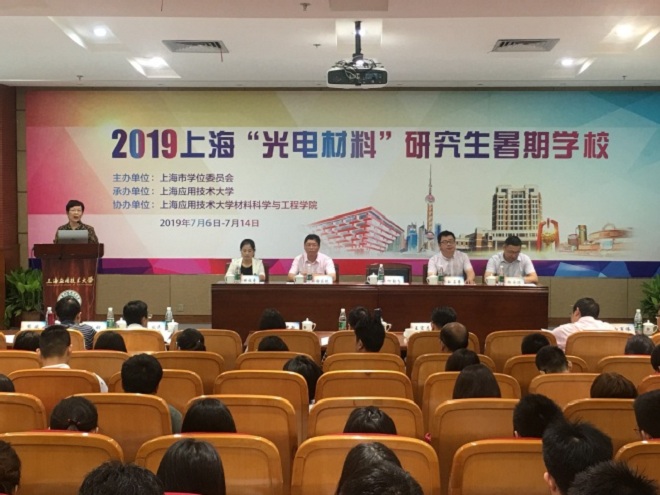 7月7日,由上海市学位委员会主办,我校承办的2019年上海“光电材料”研究生暑期学校在校开班。校长柯勤飞出席开班仪式并致辞,感谢各位专家学者来校指导授课,并欢迎来自全国各地的研究生参加本次暑期学校学习。她介绍了学校发展状况、取得的成果及学校建设发展规划,希望通过此次暑期学校,加强光电材料领域研究生之间的学习和交流,实现优质教育资源共享。