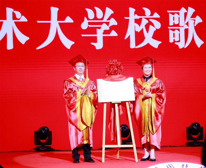 毕业典礼上,上海应用技术大学校歌《为了上应的荣光》正式发布,校歌MV震撼首发。刘宇陆、柯勤飞共同为校歌发布仪式揭幕,并为校歌作曲、中国音乐家协会会员,国家一级作曲左翼建,香料香精联合党委原书记李建民以及校歌歌词创作团队颁奖。学校教工合唱团、学生合唱团在典礼上深情演绎,昂扬动听的旋律响彻体育馆。