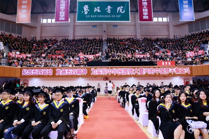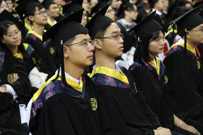 上午9点30分,伴随着全场齐唱国歌《义勇军进行曲》,毕业典礼拉开帷幕。