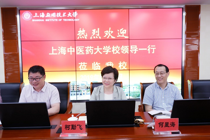 柯勤飞对张艳萍一行表示热烈欢迎,介绍了近年来我校在办学、学科和人才培养方面取得的成绩与特色,重点介绍了学校在上海高水平地方应用型高校建设上的思路与举措。张艳萍介绍了上海中医药大学的办学发展和规划情况,重点介绍了在人才培养、学科建设等方面的具体做法。王拥军表示,上海中医药大学和上海应用技术大学特色鲜明,在服务国家和社会发展战略、推进上海美丽健康产业、对接行业企业需求方面有许多共通之处,期待两校能够加强医工结合,加大产学研合作。双方就产教融合、人才培养、学科建设等多方面合作事宜作了深入的探讨交流。