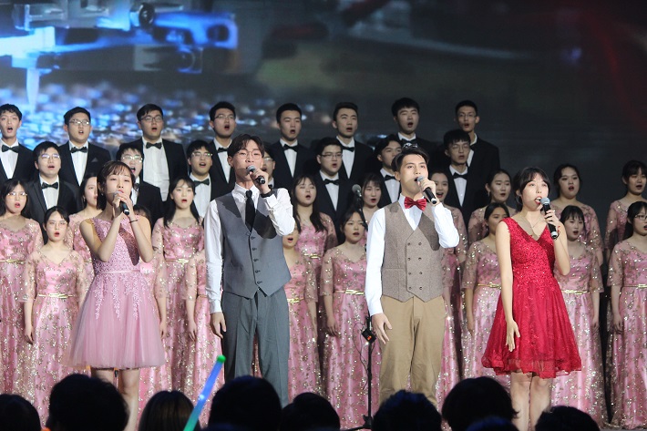整场歌会内容丰富多样,形式灵动新颖,使用啦啦球、荧光棒、灯牌、旗帜等,展现了广大青年学子的蓬勃朝气,蕴示着对新中国成立70周年、“五四”运动100周年和学校建校65周年的美好祝福与殷殷期望,表达了对伟大祖国繁荣富强的真挚感情和对学校发展的雄心壮志,彰显了时代变迁与社会发展的大主题,展现了新时代上应青年学子和广大师生的力量与担当。