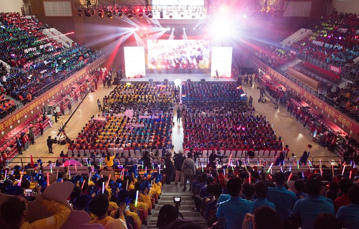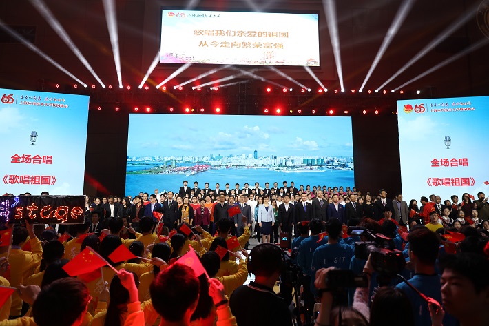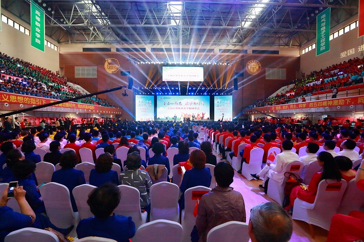 在全校师生喜迎中华人民共和国成立70周年、纪念伟大的“五四”运动100周年、欢庆上海应用技术大学建校65周年之际,为抒发和展示广大上应学子坚定理想信念、牢记时代使命、高扬青春旋律的激情与风采,激励全校师生共同推进新时代上应大各项事业快速发展,4月26日下午,“青春心向党·建功新时代”上海应用技术大学校园歌会在奉贤校区体育馆隆重举行。4000余名师生共同重温红色初心,共同讴歌伟大时代,共同唱响奋进旋律,共同演绎了一场精彩的青春艺术盛会。