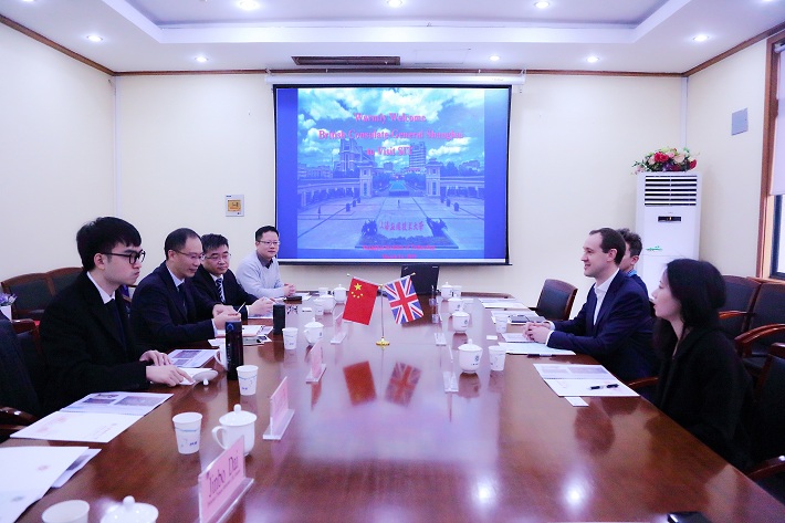 3月13日,副校长毛祥东亲切接待了来访的英国驻上海总领事馆副总领事柯牧申(Tony Clemson),文化教育处领事、英国文化教育协会华东区主任马旭宁(Matthew Knowles),科技创新处官员斯塔凯(Stacey Jiang) 和访问项目处官员哈纳(Hannah Tu)一行。上海市欧美同学会留英分会秘书长顾炜威,伦敦大学学院校友会秘书长林文贵、理事戴金波、理事傅潇霄陪同来访。双方举行会谈。
