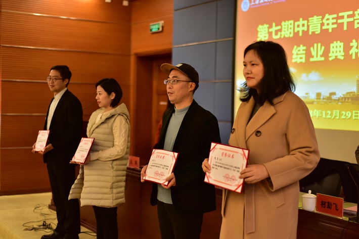 柯勤飞宣读了第七期青干班优秀学员名单。刘宇陆、柯勤飞、王瑛为学员颁发了结业证书,并为优秀学员颁发了荣誉证书。