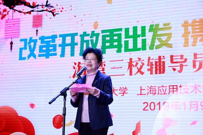 1月9日,“改革开放再出发 携手奋进新时代”——海湾三校辅导员联谊大会在我校举行,校党委副书记宋敏娟、华东理工大学党委副书记宋来及上海师范大学学工部部长朱惠军出席。我校和华东理工大学、上海师范大学的学工部、校团委负责人,200余名辅导员共聚我校、喜迎新春、共话发展。
