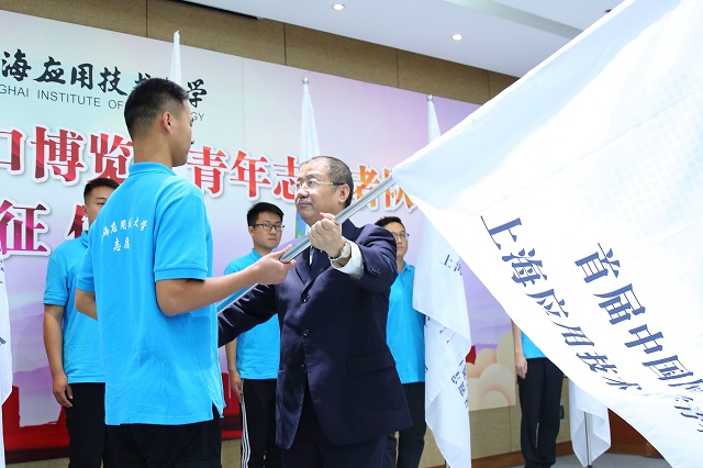 10月22日下午,学校首届中国国际进口博览会青年志愿者队出征仪式在奉贤校区举行。校党委书记刘宇陆出席仪式并为青年志愿者队授队旗,校党委副书记宋敏娟作出征前动员讲话,进博会志愿者工作领导小组成员、相关学院党总支副书记、团委全体干部、各学院团总支书记、全体进口博览会志愿者及学校志愿者服务中心骨干等200余人出席仪式。出征仪式由校党委学工部长、学生处长袁翔主持。