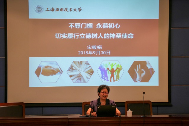 宋敏娟从中国和西方大学发展历史阐释了大学的由来、本质及职能,从辅导员岗位及高校思想政治工作的历史演进中深刻揭示了党和国家对大学生思想政治教育工作的高度重视,及对辅导员队伍寄予的厚望。她同时也为全体辅导员上了一堂精彩的校情校史课。她指出,上海应用技术大学有着光荣的历史和传统,值得全体辅导员自豪和珍惜,并担起光大门楣的责任。辅导员的工作成效关乎国家、民族的前途和命运,因此作为新时代的辅导员,要胸怀全局,放眼大势,要有新担当和新作为。她强调,做好学生工作要知己知彼有底气,还要永葆初心敢担当。她要求,辅导员在实际工作中要坚定正确政治方向,关爱服务学生,善于借势借力,不断改革创新,同时还要以工匠精神来锻造自己,不断提高工作水平和质量,追求完美和极致。