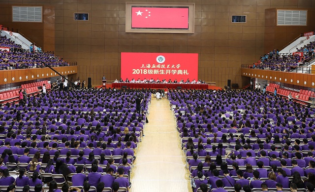 9月14日下午,我校2018级新生开学典礼在奉贤校区体育馆隆重举行,来自祖国各地的4844名上应大“萌新”与校领导刘宇陆、柯勤飞、何星海、王瑛、张锁怀、毛祥东,学校各学院、职能部处负责人以及教师代表、新生辅导员、班导师、家长代表、中学校长代表等共聚一堂,扬帆起航,开启人生新的篇章。党委学工部部长袁翔介绍出席典礼的校党政领导,各学院院长、党总支(委)书记。开学典礼由副校长张锁怀主持。