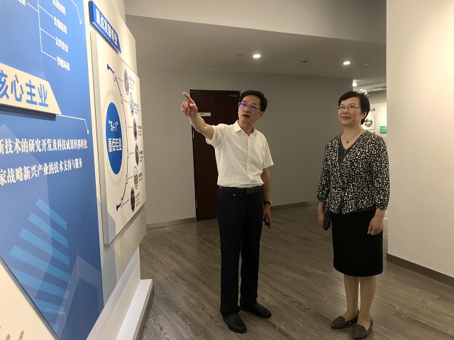 李良君陪同柯勤飞一行参观了上海化工研究院展示厅,介绍了研究院的发展历程和科研成果,回顾了前期双方的合作项目及成效,并希望双方发挥各自的资源优势,不断深化合作内涵,联合攻关破解一些行业关心的重大问题。