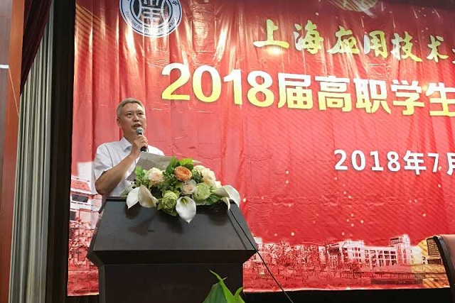 7月6日,学校2018届高职学生毕业典礼在徐汇校区举行。副校长张锁怀出席并讲话,党委学工部部长、学生处处长袁翔主持仪式,徐汇校区管委会副主任兼办公室主任范文蓓,高职学院党政领导班子成员,上海石化工业学校、上海信息技术学校负责人及高职学院教师、辅导员、毕业生、家长代表出席本次典礼。