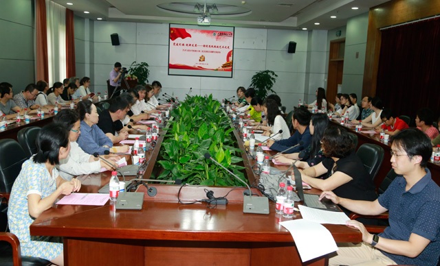 主题党日活动首先举行了“丹心创绘中国梦 薪火传承中华情”课程思政艺术作品展开幕仪式。艺术学院党总支书记孙桂娟致开幕辞。相关教师从艺术创作和思政教育的角度,为参加画展的师生们讲解了学生们曼妙画笔背后的赤诚丹心。随后,主题党日活动进行了三位课程思政团队教师现场说课活动,分别从“融合”与“协同”、“创新”与“育人”、“分享”与“提升”等方面畅谈课程思政课的教学理念、实践做法、教学体会,得到了兄弟高校专家的高度评价。在现场说课活动后,参加主题党日活动的师生党员们还围绕相关主题进行了热烈的座谈交流。