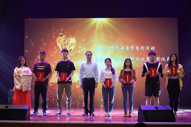 何星海和柏怡岚在晚会上为本次中华母亲节获奖同学颁奖。