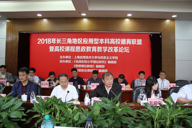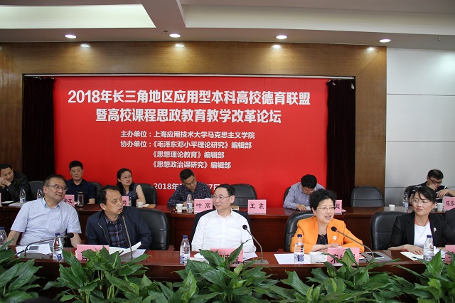 5月25日至27日,2018年长三角地区应用型本科高校德育联盟暨高校课程思政教育教学改革论坛在我校举行。市教卫工作党委副书记、市教委副主任、教育部思政理论课教学指导委员会副主任高德毅,我校党委书记刘宇陆,校党委副书记宋敏娟出席。市教委德育处处长耿绍宁、政策法规处处长王磊,市教育科学研究院副院长、市学生德育发展中心主任沙军,我校党委常委、宣传部部长杨明,校党委教师工作部部长、人事处处长、马克思主义学院院长李国娟等出席论坛活动。宋敏娟主持开论坛幕式。