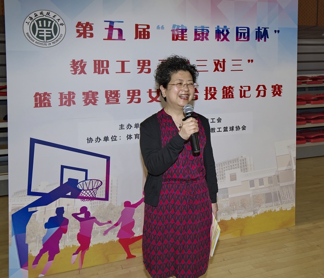 5月14日,我校第五届“健康校园杯”教职工“三对三”篮球赛暨男女混合投篮记分赛开幕式举行,校党委副书记宋敏娟出席,并宣布上海应用技术大学第五届“健康校园杯”教职工“三对三”篮球赛暨男女混合投篮记分赛开幕。